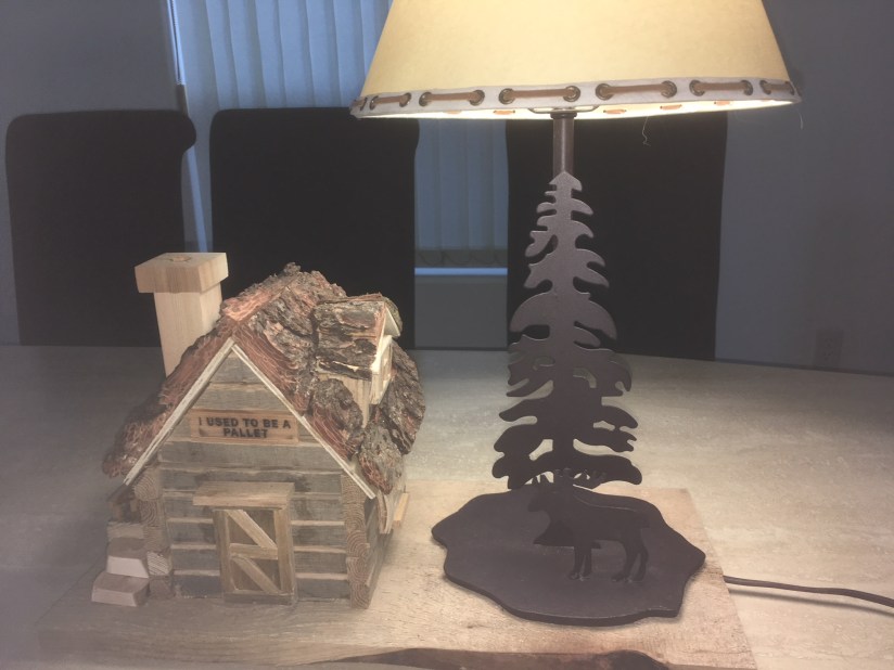 Interior Decor, Repurposed Pallets In ActionP174 – Valet (storage) Cabin and Lamp May 26, 2019May 26, 2019 Ray Young I found this Moose and Tree lamp at a second hand shop and continued the outdoor theme by adding a log cabin. Roof lifts off for storage. Share this: Click to share on X (Opens in new window) X Click to share on Facebook (Opens in new window) Facebook Like Loading...