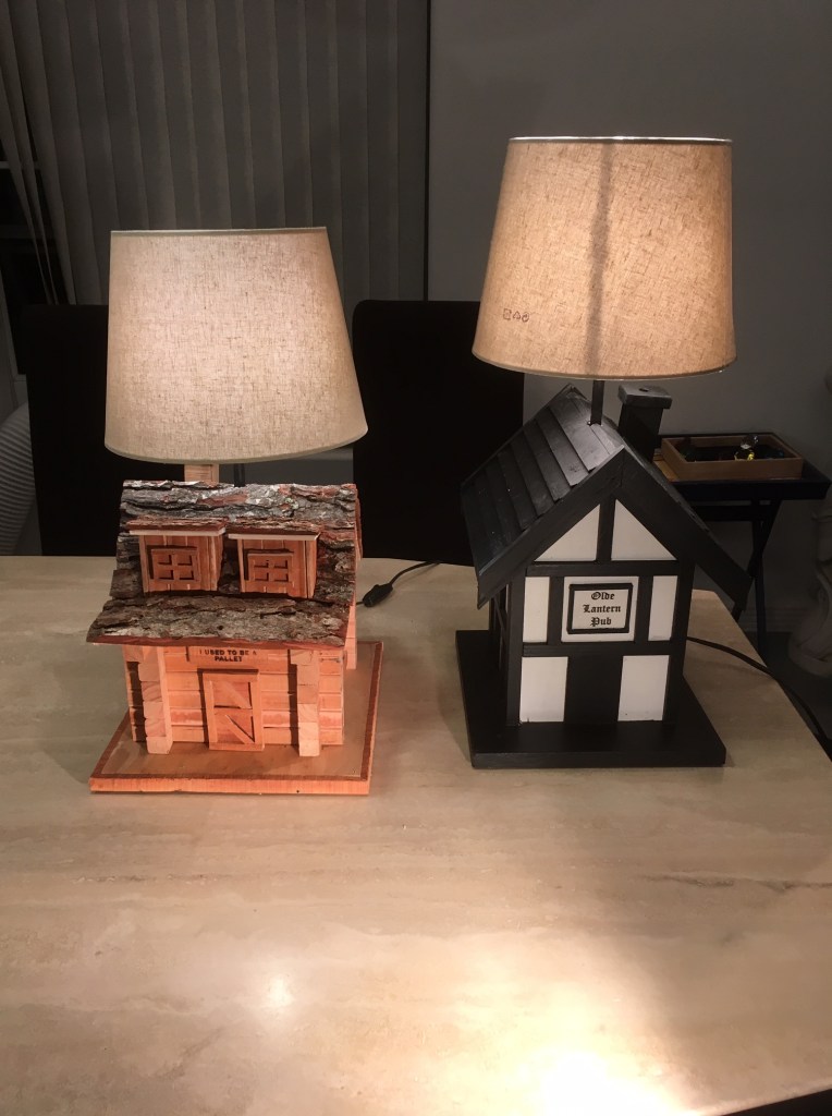 Displays, Interior DecorP215 – Log Cabin Lamp and P295 – Olde Lantern Pub (Tudor Style Pub) Lamp. July 21, 2019 Ray Young