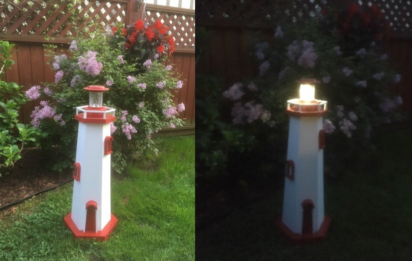 Outdoor, Repurposed Pallets In ActionP235 – Solar Powered Lighthouse Garden Ornament May 27, 2019 Ray Young Day View and Night View from the Hot Tub.